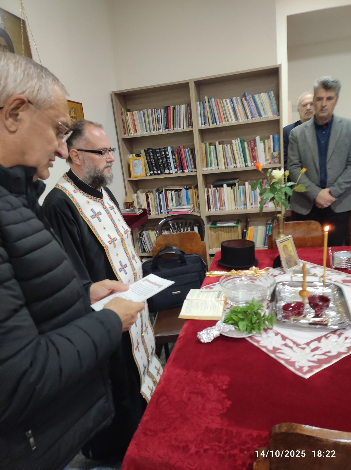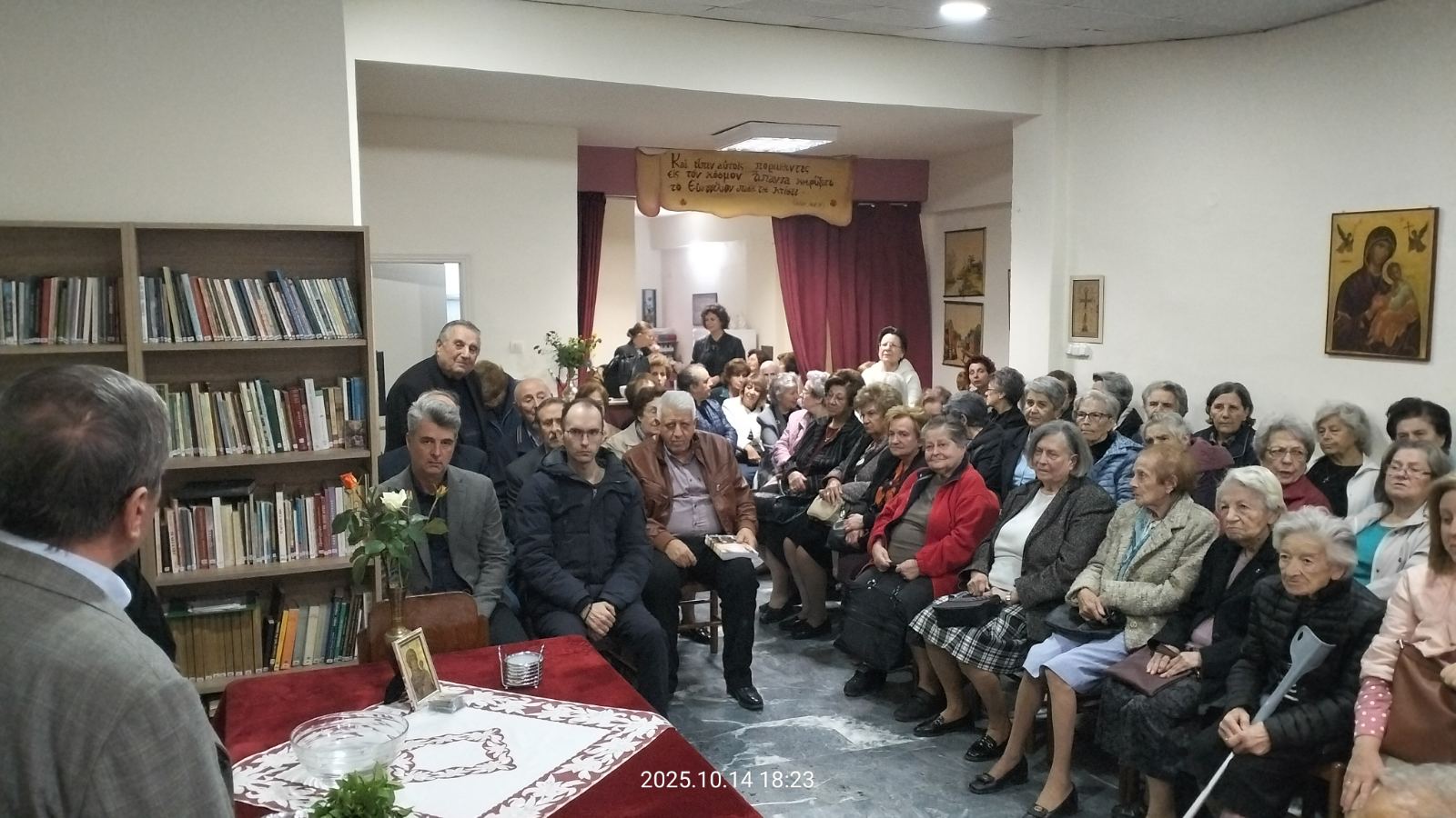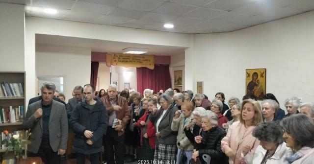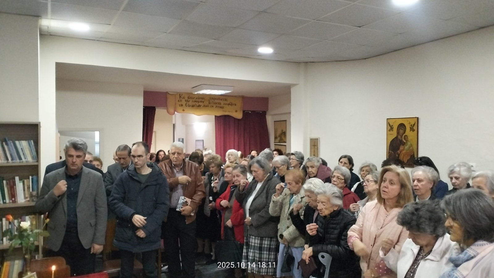 Μετά τον αγιασμό και τις ανακοινώσεις, οι παρευρεθέντες αδελφοί προσήλθαν και έλαβαν την ευλογία, με εικόνα της Παναγίας Μυρτιδιώτισσας, από τον π.Αθανάσιο.